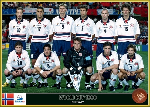 1998年世界杯,挪威阵中有索尔斯克亚(图中20号)