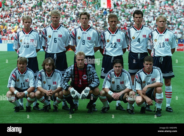 1994年世界杯,挪威阵中有哈兰德的父亲老哈兰德(图中18号)